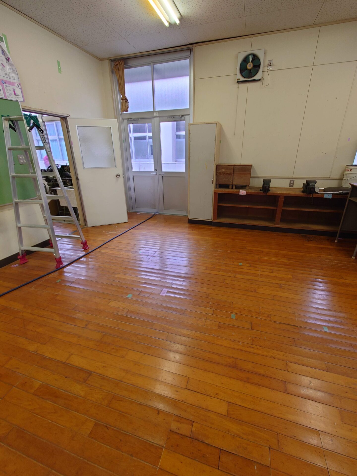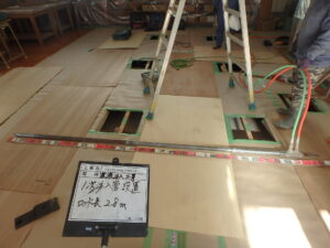 部分床復旧、工事完了。子供たちも傾斜を感じず勉強できます。